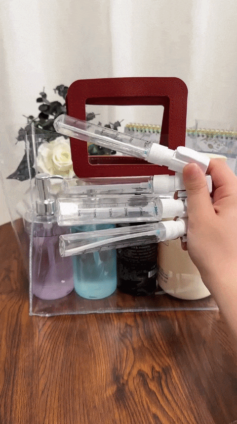 Jedna rzecz- cztery ulubione kosmetyki w jednym miejscy. Bez bałaganu i noszenia kilku butelek. uzupełnij płyny, wrzuć do torby i korzystaj! Idealny do samolotu, na siłownię i do użytku codziennego w domu.